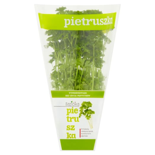 Natka pietruszki Baziółka to doniczka ze świeżymi ziołami, które zachowują swój aromat dłużej niż cięte czy suszone. Zielona pietruszka ma liczne właściwości zdrowotne – jest źródłem witamin i minerałów. Niezastąpiona w polskiej kuchni, stanowi smaczny dodatek do zup, sosów i koktajli.