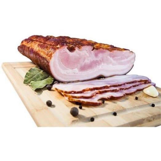 Boczek z komina to produkt doskonałej jakości, która jest efektem połączenia wyselekcjonowanych składników z tradycją wędzenia. Do produkcji boczku wykorzystano wyselekcjonowane elementy wieprzowego boczku, które następnie zostały poddane wędzeniu w tradycyjnej wędzarni. Wcześniej jednak mięso zostało odpowiednio przygotowane, głównie poprzez natarcie go odpowiednią kompozycją przypraw, w tym ziela angielskiego i liścia laurowego. Końcowy etap produkcji to parzenie, po którym gotowy boczek trafia na nasze stoły. Boczek jest doskonałym dodatkiem do zup warzywnych. Pokrojony w kostkę i dokładnie przesmażony na patelni stanowi podstawę tradycyjnej polskiej okrasy.