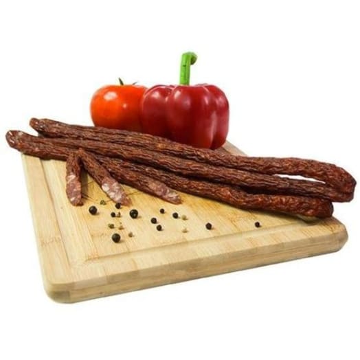 Kabanosy wieprzowe to wędlina, która zachwyci każdego miłośnika kiełbas. Do ich produkcji Wierzejki wykorzystały doskonałej jakości wyselekcjonowane mięso wieprzowe. Z każdych jego 143 g powstało 100 g wyśmienitej kiełbasy. Mięso to zostało średnio rozdrobnione a następnie połączone z kompozycją naturalnych przypraw. Umieszczone w naturalnych osłonkach zostało poddane kolejno wędzeniu, parzeniu i podsuszaniu. Stąd ten piękny aromat i głęboki smak. Kabanosy doskonale sprawdzą się jako składnik koreczków, czy samodzielna przekąska. Mogą być też podawane na ciepło w towarzystwie zimnych sosów. Produkt świeży. Zalecamy spożyć w ciągu dwóch dni od momentu dostawy.
